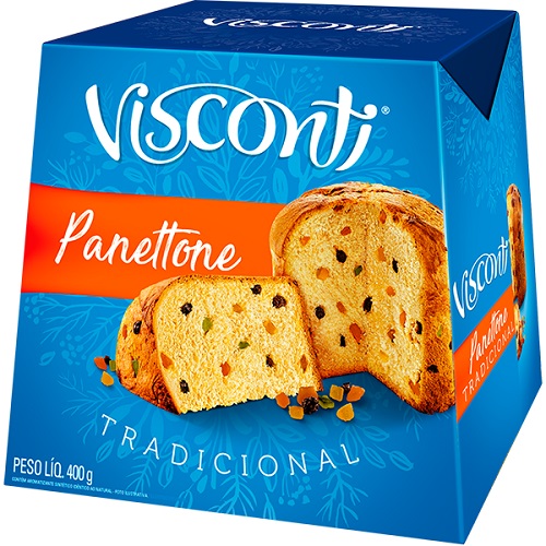 Ingredientes: Farinha de trigo enriquecida com ferro e ácido fólico, açúcar, frutas cristalizadas, gordura vegetal, uvas passas, ovo integral, gema de ovo, extrato de malte, sal, soro de leite, emulsificante: mono e diglicerídios de ácidos graxos, aromatizantes e conservadores: propinato de cálcio e ácido sórbico. Contém glúten. Contém lactose. Alérgicos: Contém ovos e derivados, derivados de trigos, cevada, soja e de leite. Pode conter: Centeio, aveia, triticale, amendoim, avelã, castaha-de-caju, castanha-do-pará, gergelim e nozes.